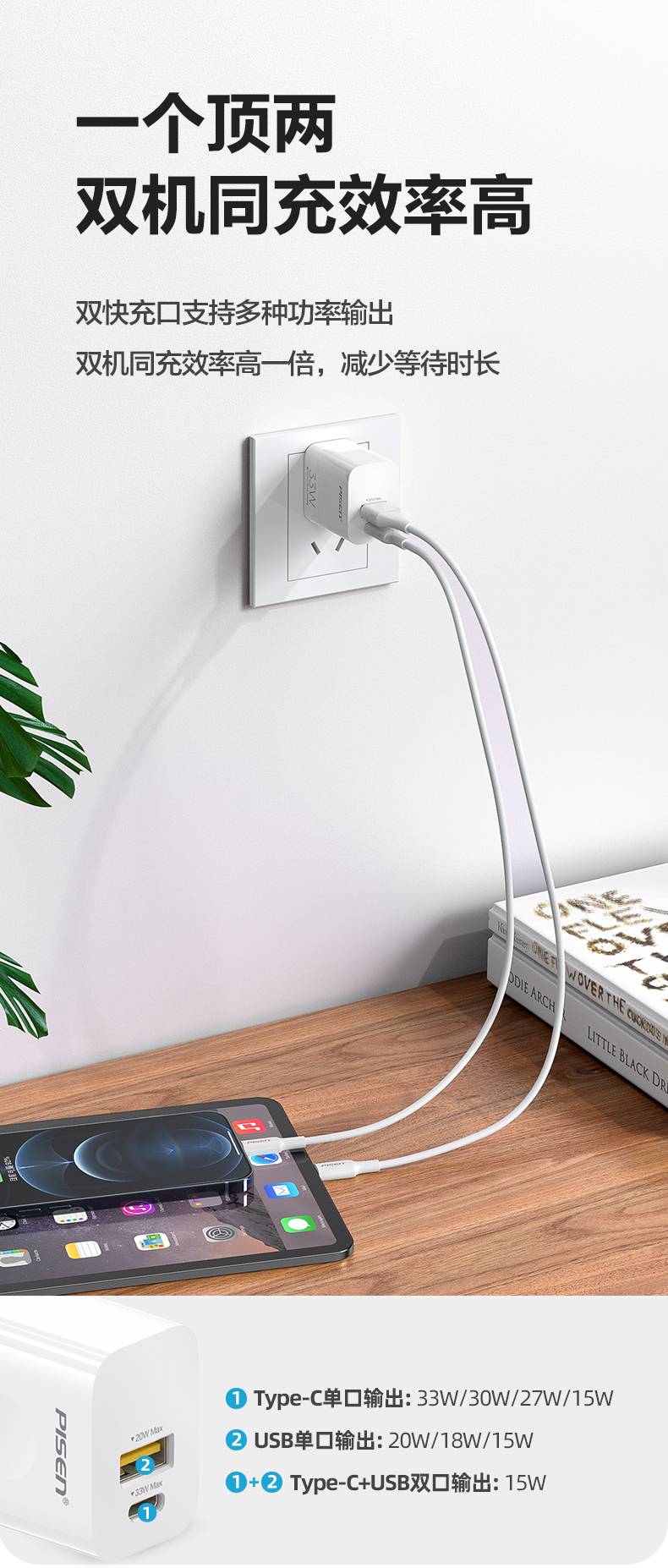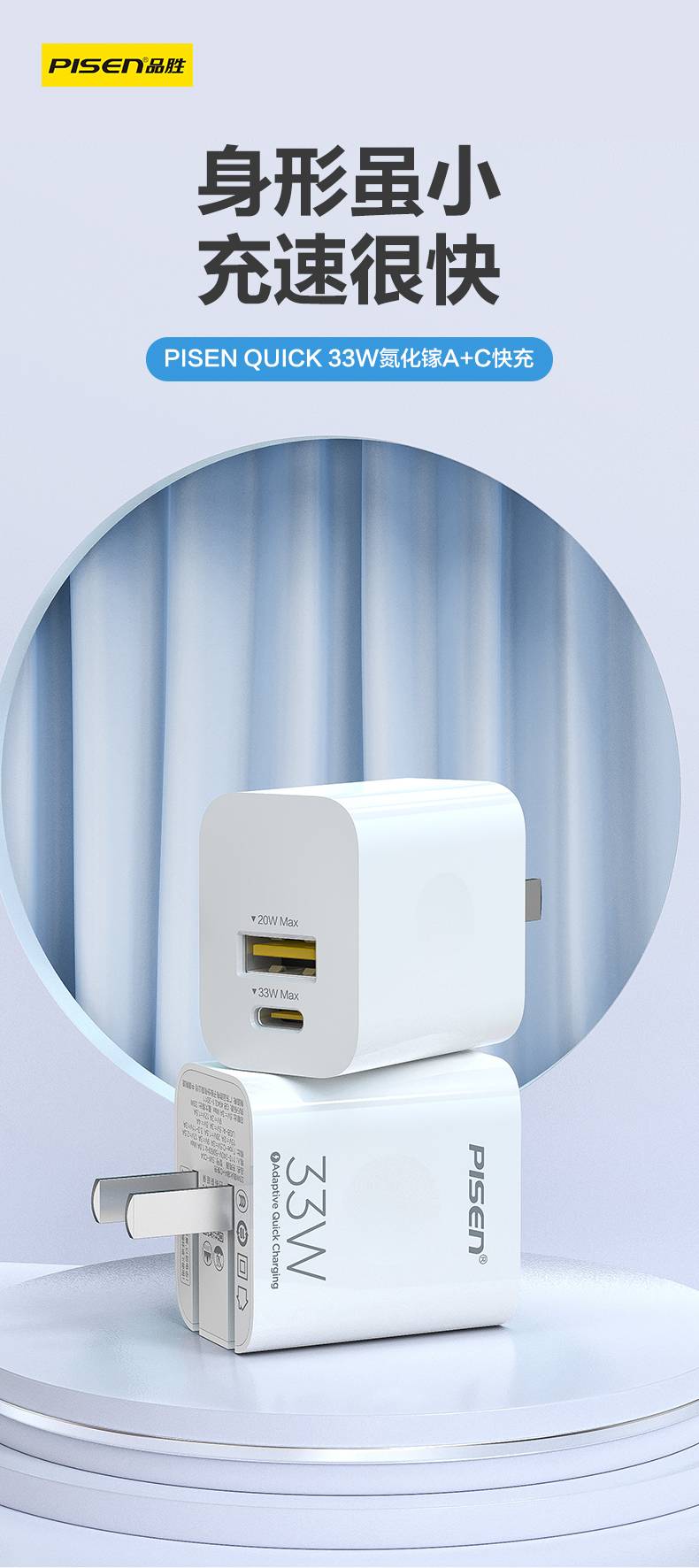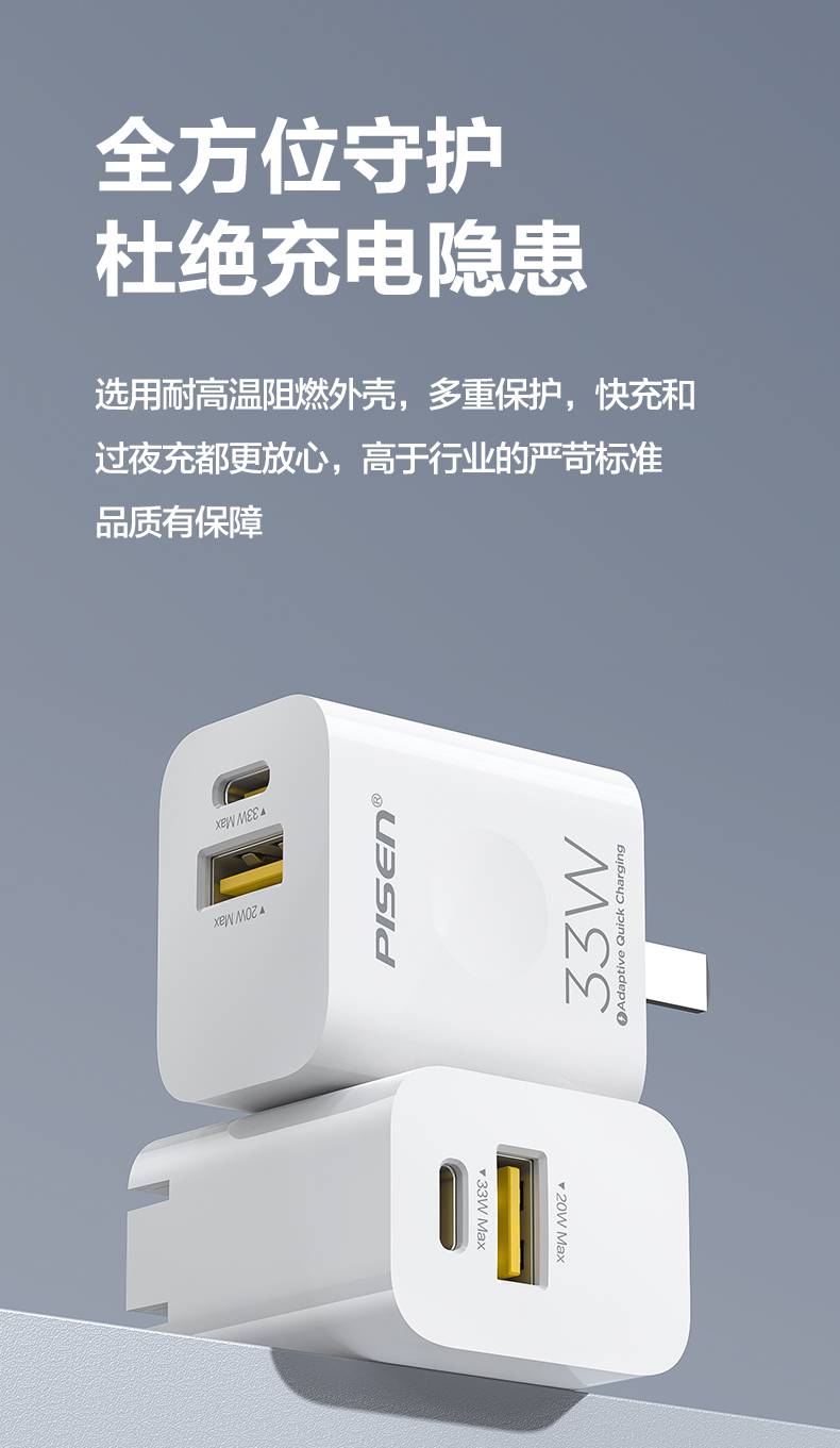 品胜快充充电头33W氮化镓iPhone13苹果12PD30W充电器USB30W
