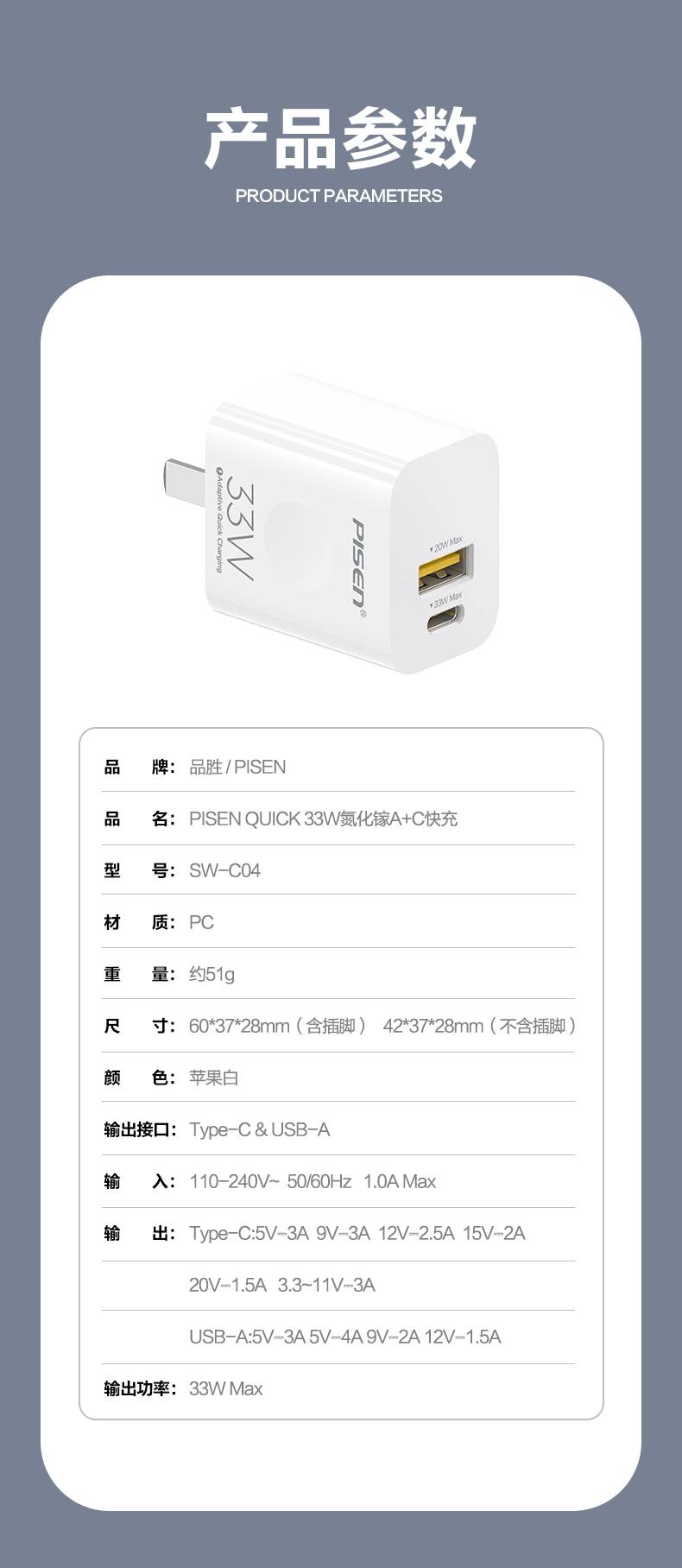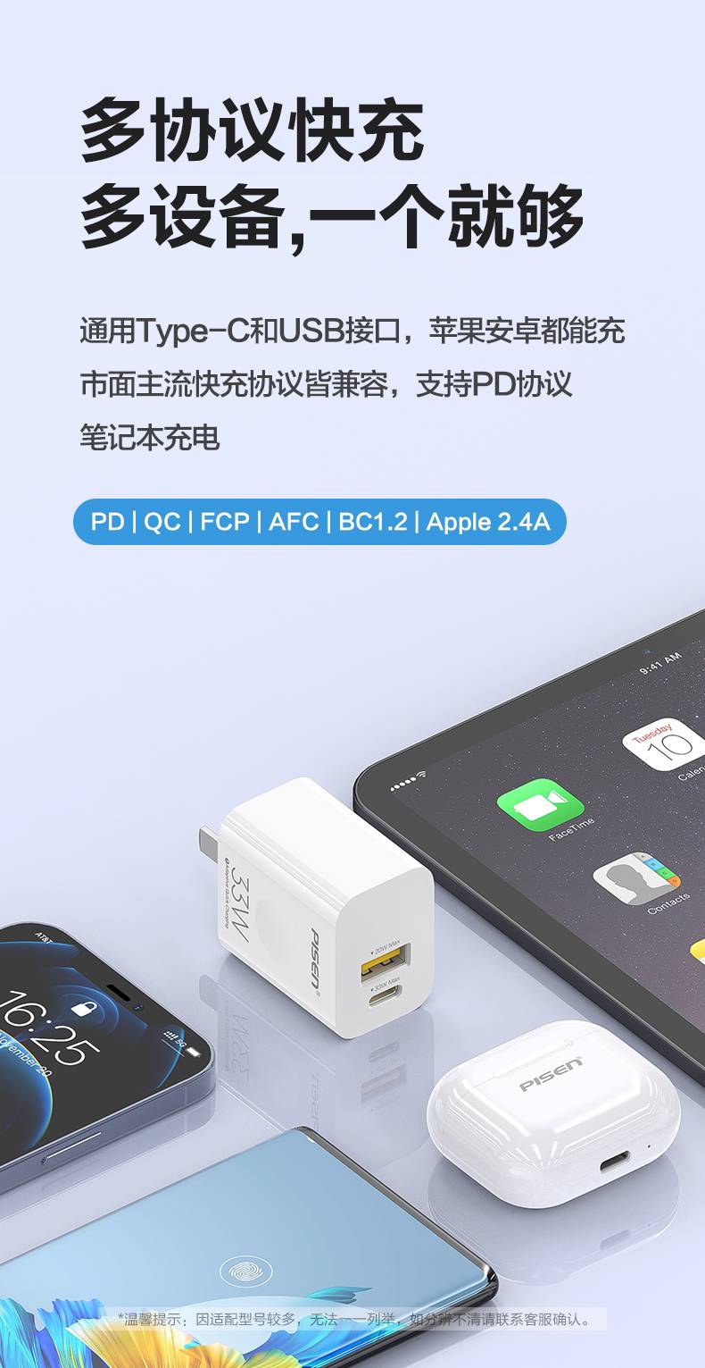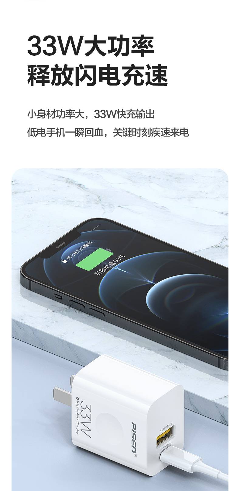 品胜快充充电头33W氮化镓iPhone13苹果12PD30W充电器USB30W