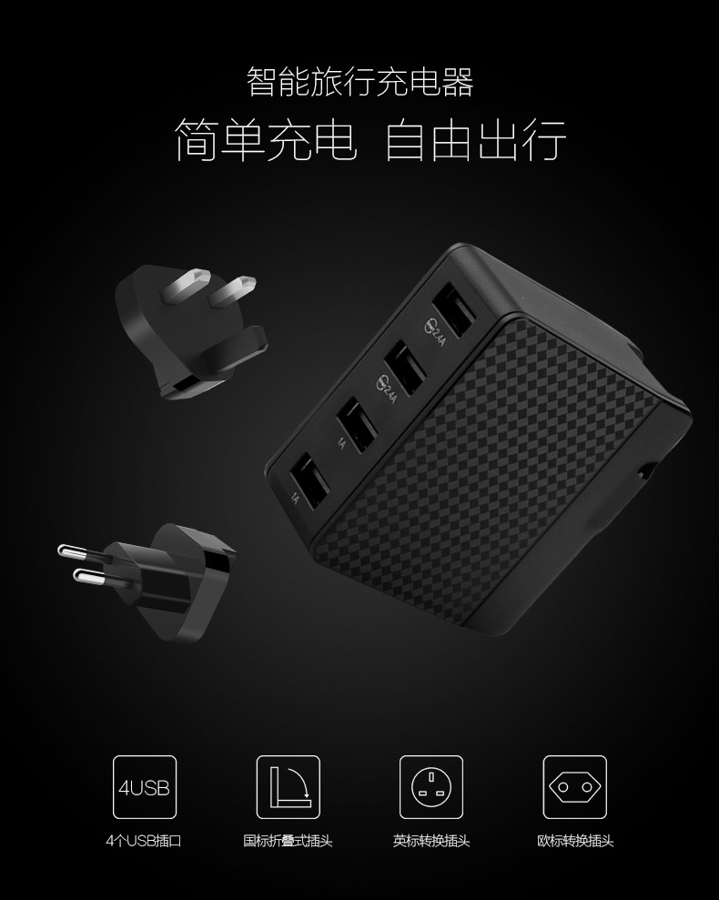 品胜 智能旅行充电器(全球充) 魔幻黑