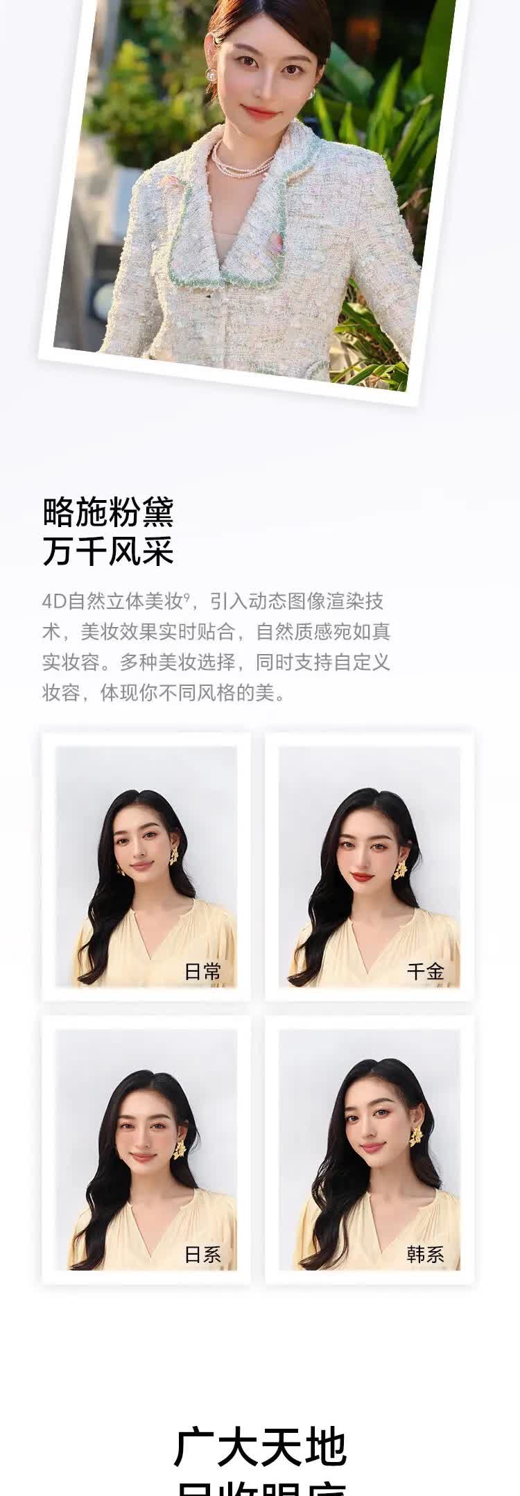 | 拍摄特色 | 后置:动态照片、延时摄影、AI摄影、AI视频、超大广角、大光圈、多镜录像、夜景模式、人像模式、专业拍照、录像、慢动作、全景模式、HDR拍照、滤镜、水印、文档扫描、超级微距、笑脸抓拍、声控拍照、定时拍摄、连拍、高像素模式、主角模式、微电影等; 前置:动态照片、人像模式、延时摄影、夜景模式、滤镜、笑脸抓拍、自拍镜像、声控拍照、定时拍摄、手势拍照、水印模式、高像素模式等 |