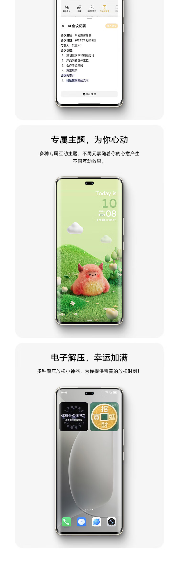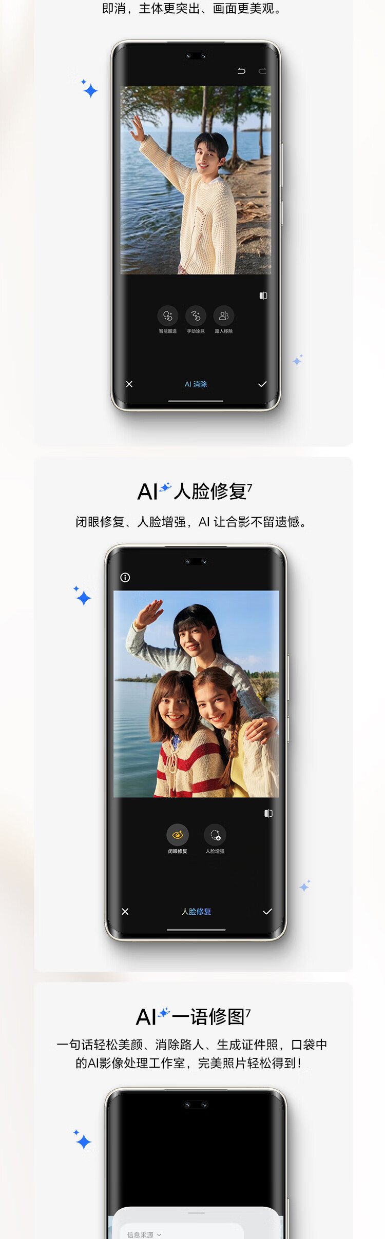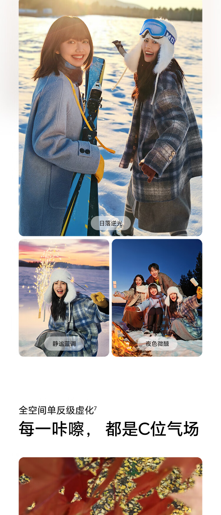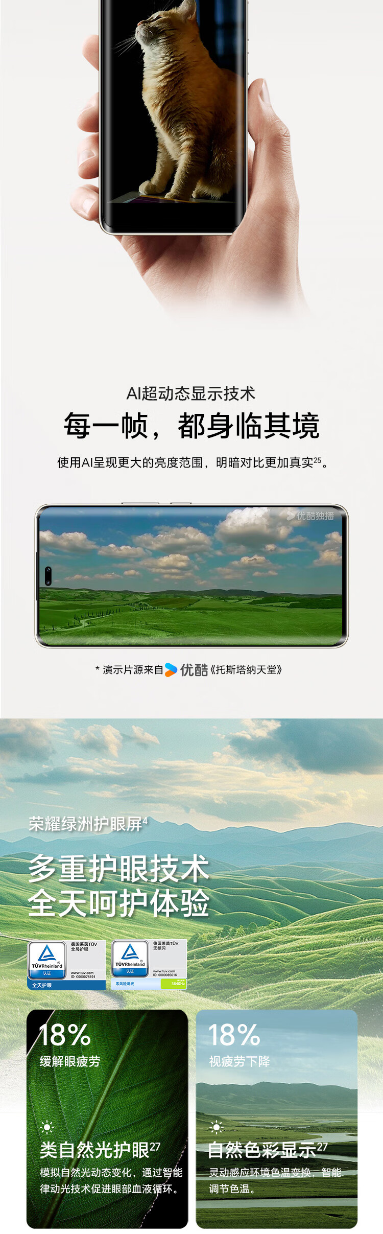| 功能特征 | 全焦段AI人像 鹰眼抓拍,单反级前置镜头 雅顾光影,超高色准专业绿洲护眼屏 |