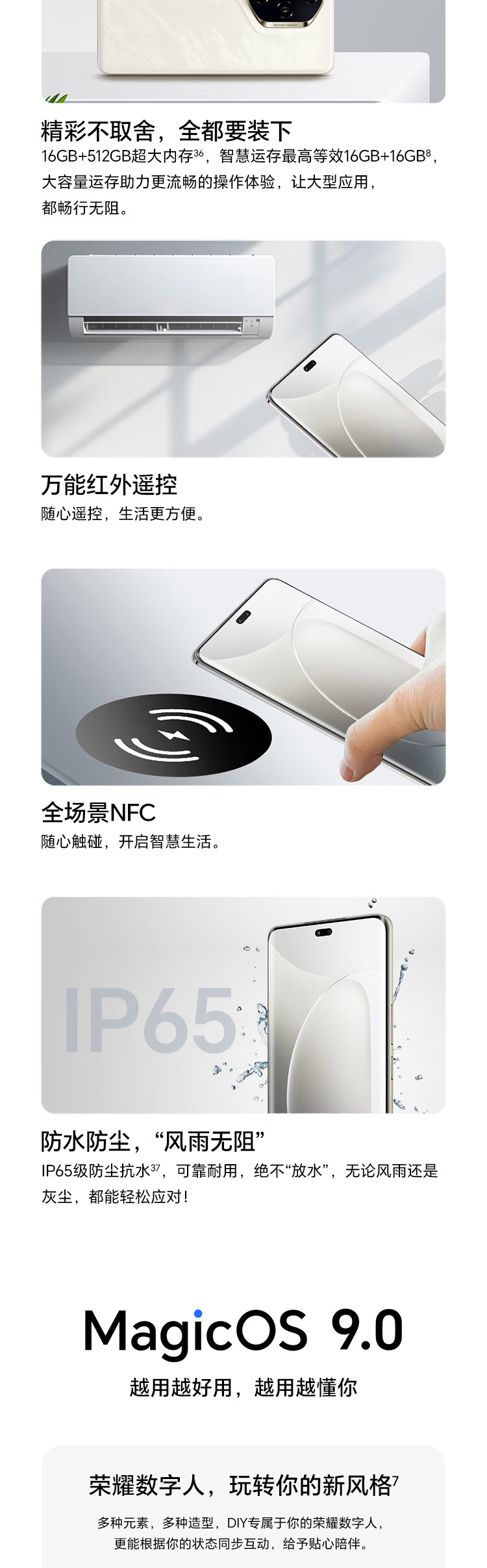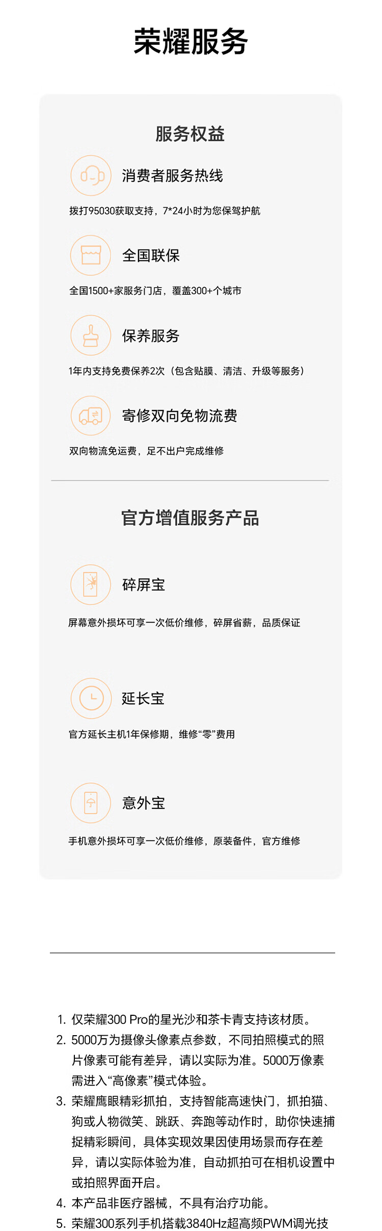 | 配置 | HONOR SuperCharge充电器×1,Type-C数据线×1,保护壳×1,出厂防尘膜×1,取卡针×1 |