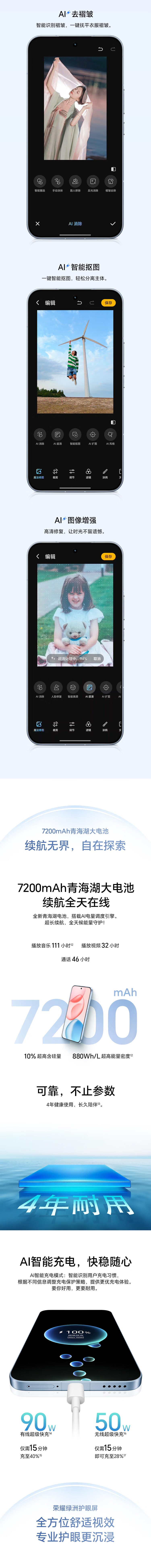 | 无线充电 | 支持50W荣耀无线超级快充,支持无线反向充电 |