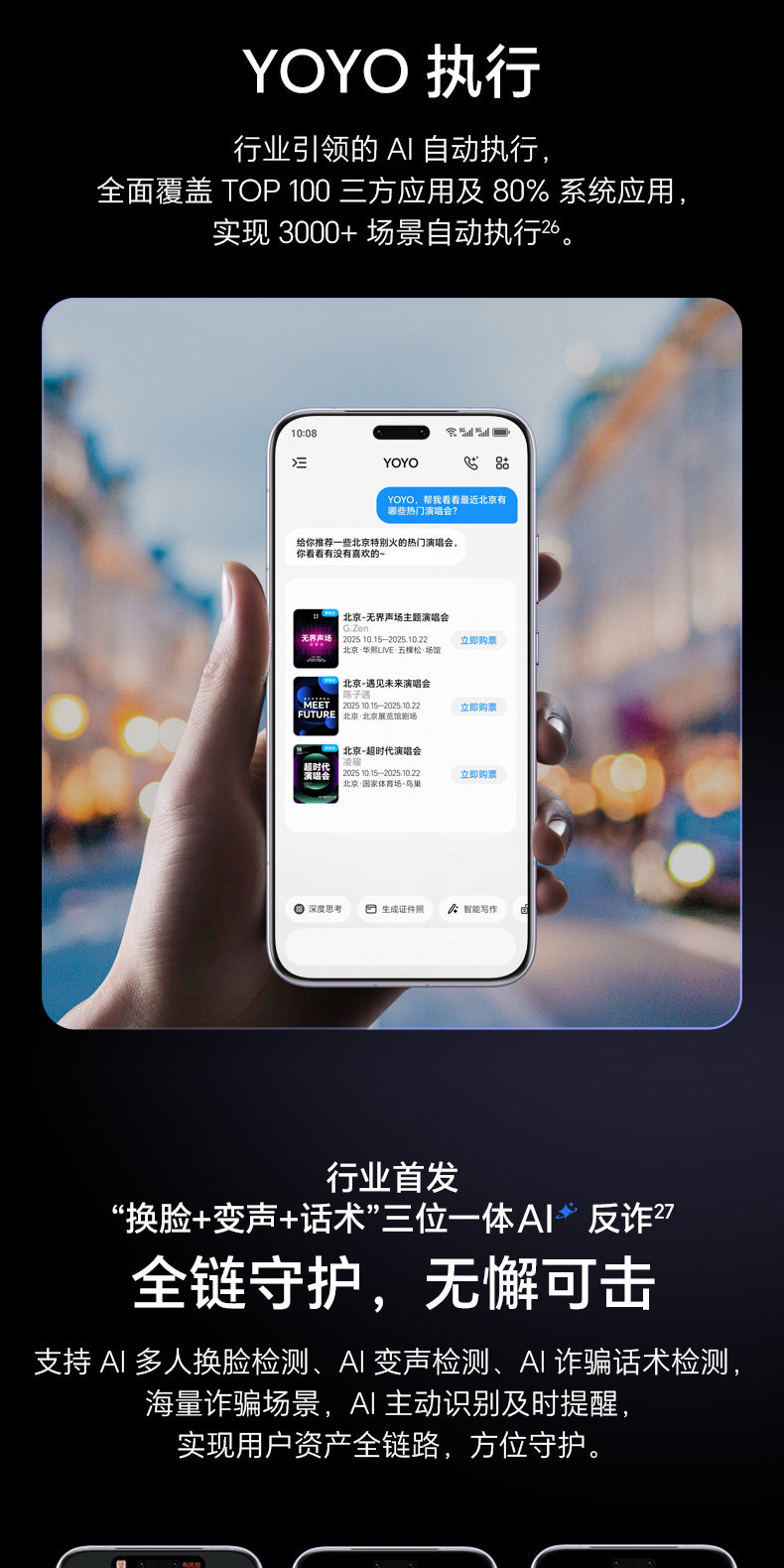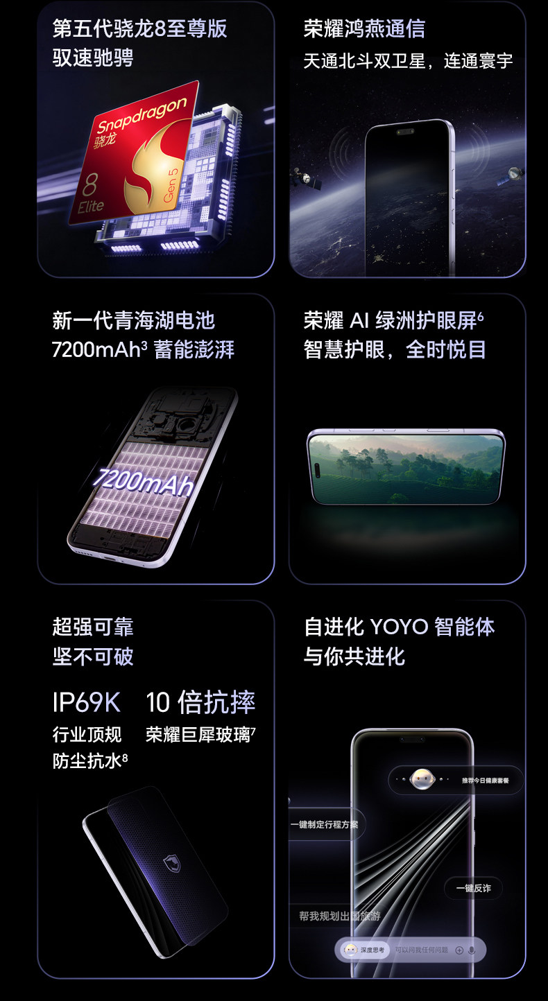 | 功能特征 | 搭载2亿长焦+超夜神影像系统;AiMAGE原色引擎+超级防抖;第五代骁龙8至尊版+卫星通信;外观采用超微晶纳米陶瓷机身+满级防水抗摔;7200mAh电池+120W快充续航无担忧 |
