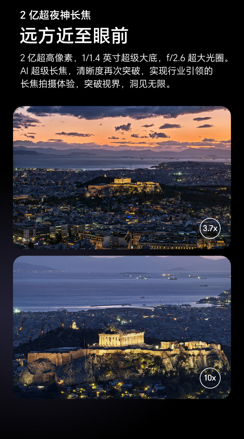 | 后置摄像头像素 | 2亿超神夜神长焦+5000万超夜神主摄+5000万超广角 |