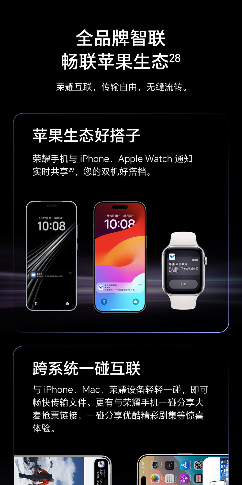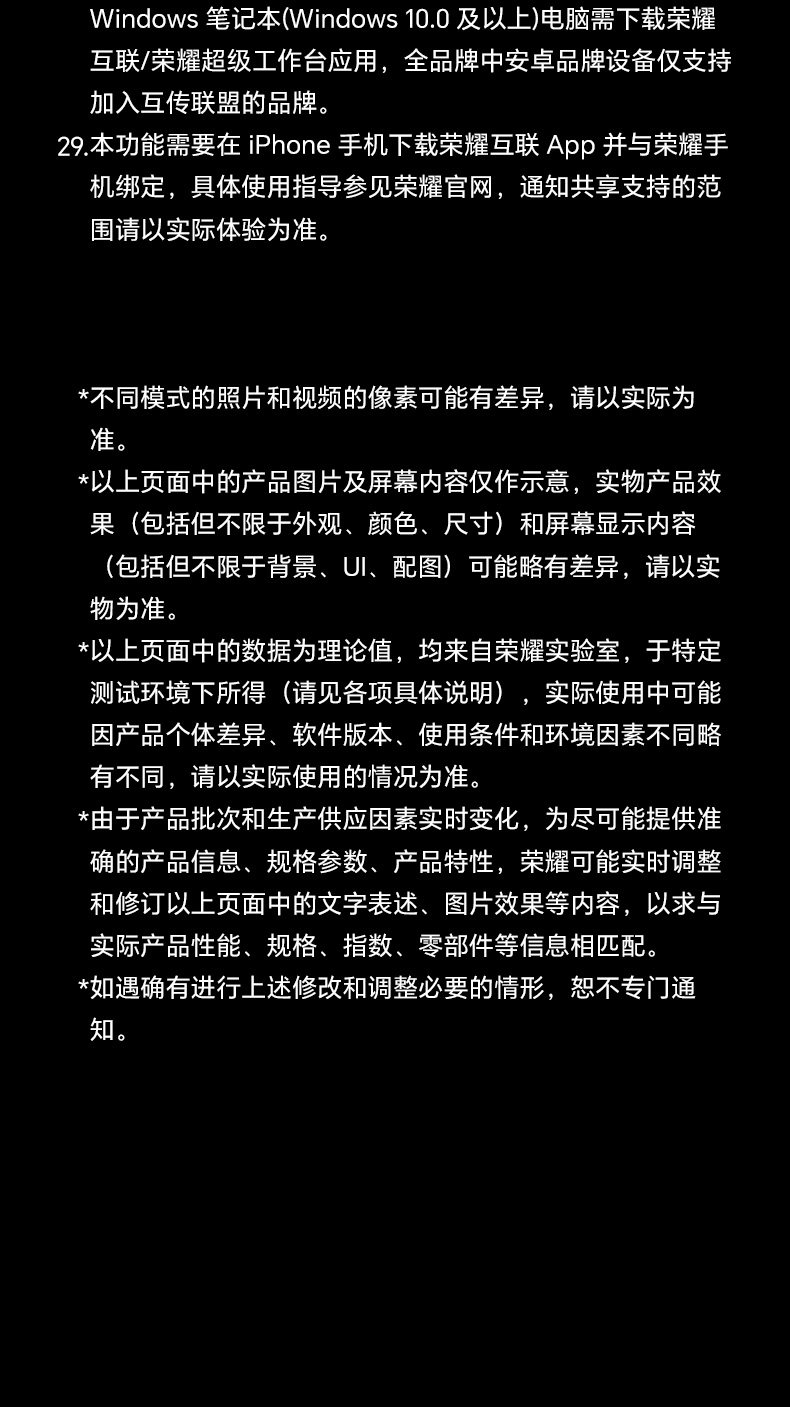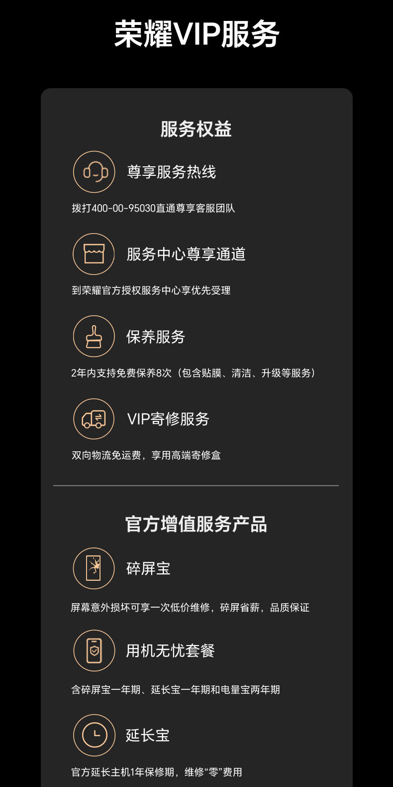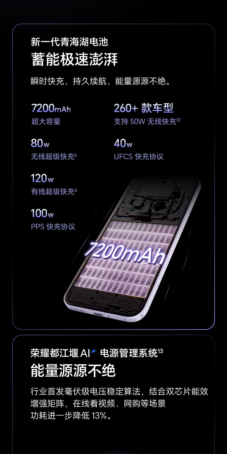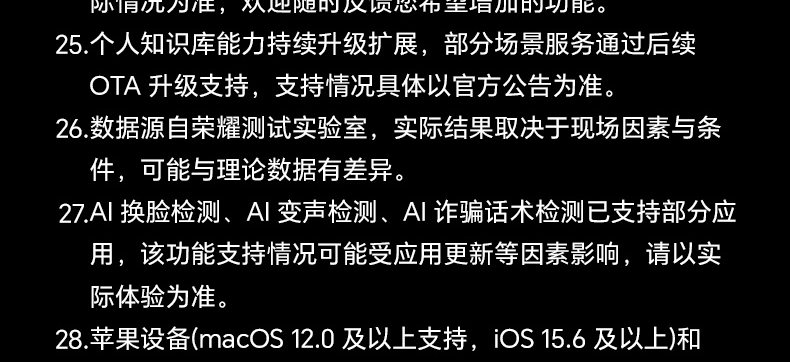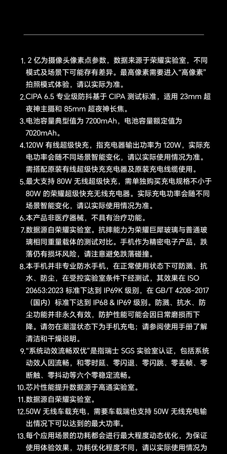 | 无线充电 | 80W荣耀无线超级快充,支持无线反向充电 纠错 |