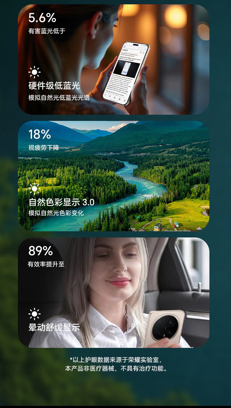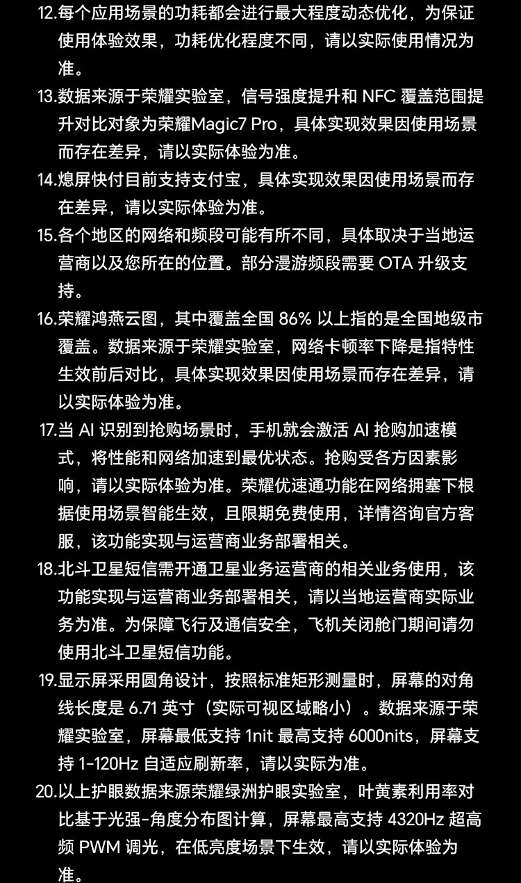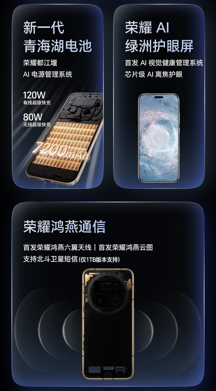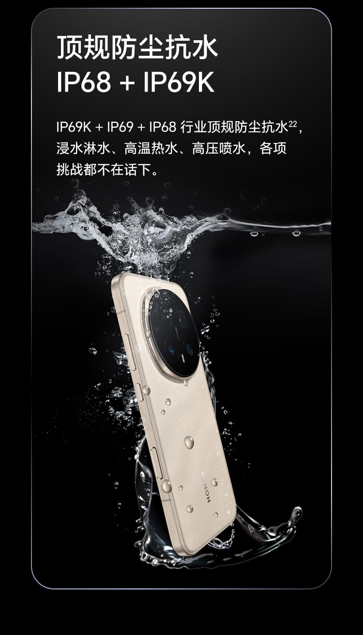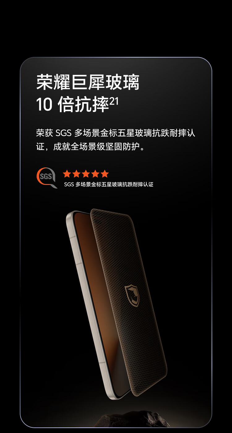 | 配置 | 快速指南 ×1, HONOR SuperCharge充电器 ×1, Type-C数据线 ×1, 取卡针 ×1, 手机保护壳 ×1, 新机权益卡(含电子三包凭证)×1, 出厂防尘膜×1 |