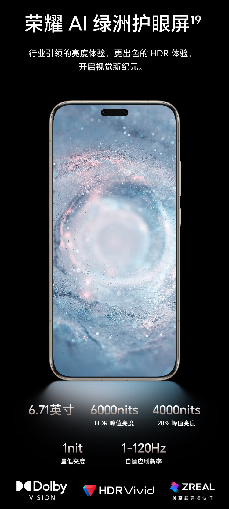 | 峰值亮度 | HDR峰值亮度:6000nits;全局峰值亮度:1800nits |