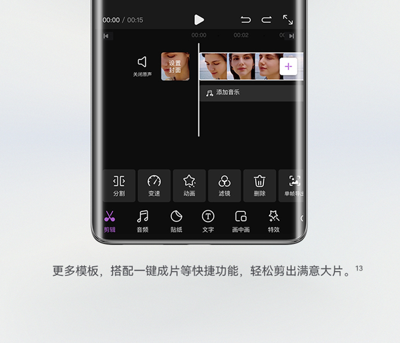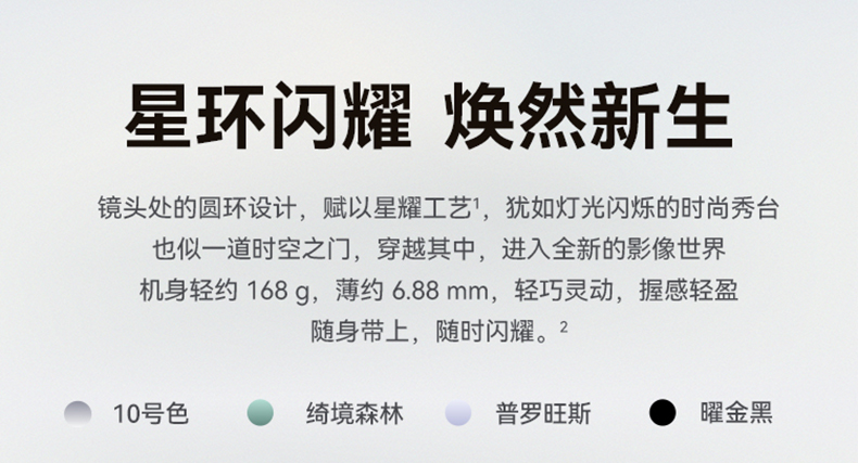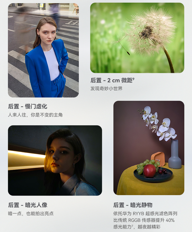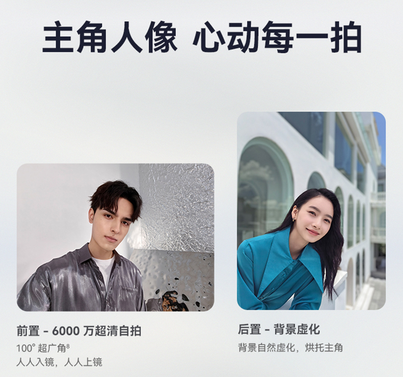 | 拍摄特色 | 后置摄像头:短视频、人像追焦、人像留色、人像虚化、微电影、多机位模式、AI美拍、广角、夜景模式、人像模式、高像素模式、拍照、专业拍照、录像、双景录像、超级微距、全景模式、延时摄影、慢动作、大光圈、水印、文档矫正、动态照片、智能滤镜、定时拍摄、笑脸抓拍、声控拍照、熄屏快拍、连拍; 前置摄像头:短视频、慢门、微电影、夜景模式、人像模式、录像、慢动作、延时摄影、全景模式、滤镜、自拍镜像、水印、笑脸抓拍、声控拍照、定时拍摄 |