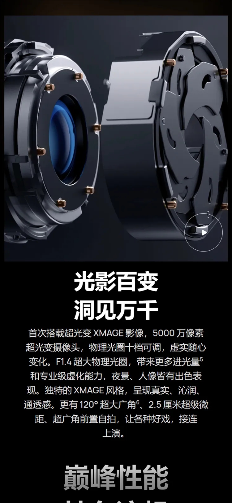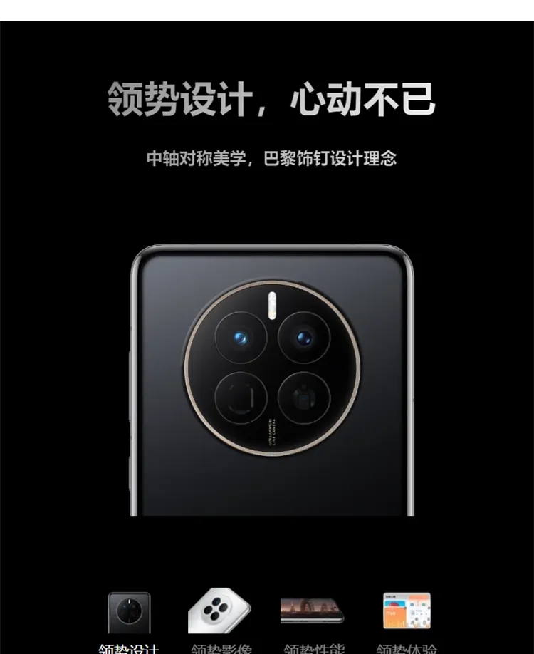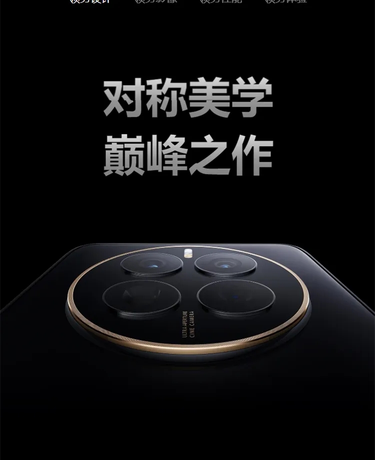 | 拍摄特色 | 后置摄像头拍摄功能:智能可变光圈、物理光圈十档可调、超级夜景、超级微距、微距视频、视频 HDR Vivid、微距画中画、微电影、高像素模式、延时摄影、超大广角、大光圈虚化、双景录像、超级夜景、人像模式、专业模式、慢动作、全景模式、黑白艺术、流光快门、智能滤镜、多机位、水印、文档矫正、AI 摄影大师、动态照片、快拍、4D 预测追焦、笑脸抓拍、声控拍照、定时拍照、连拍; 前置摄像头拍摄功能:慢动作、智能广角切换、夜景模式、人像模式、全景模式、延时摄影、动态照片、智能滤镜、水印、笑脸抓拍、自拍镜像、声控拍照、定时拍摄 |