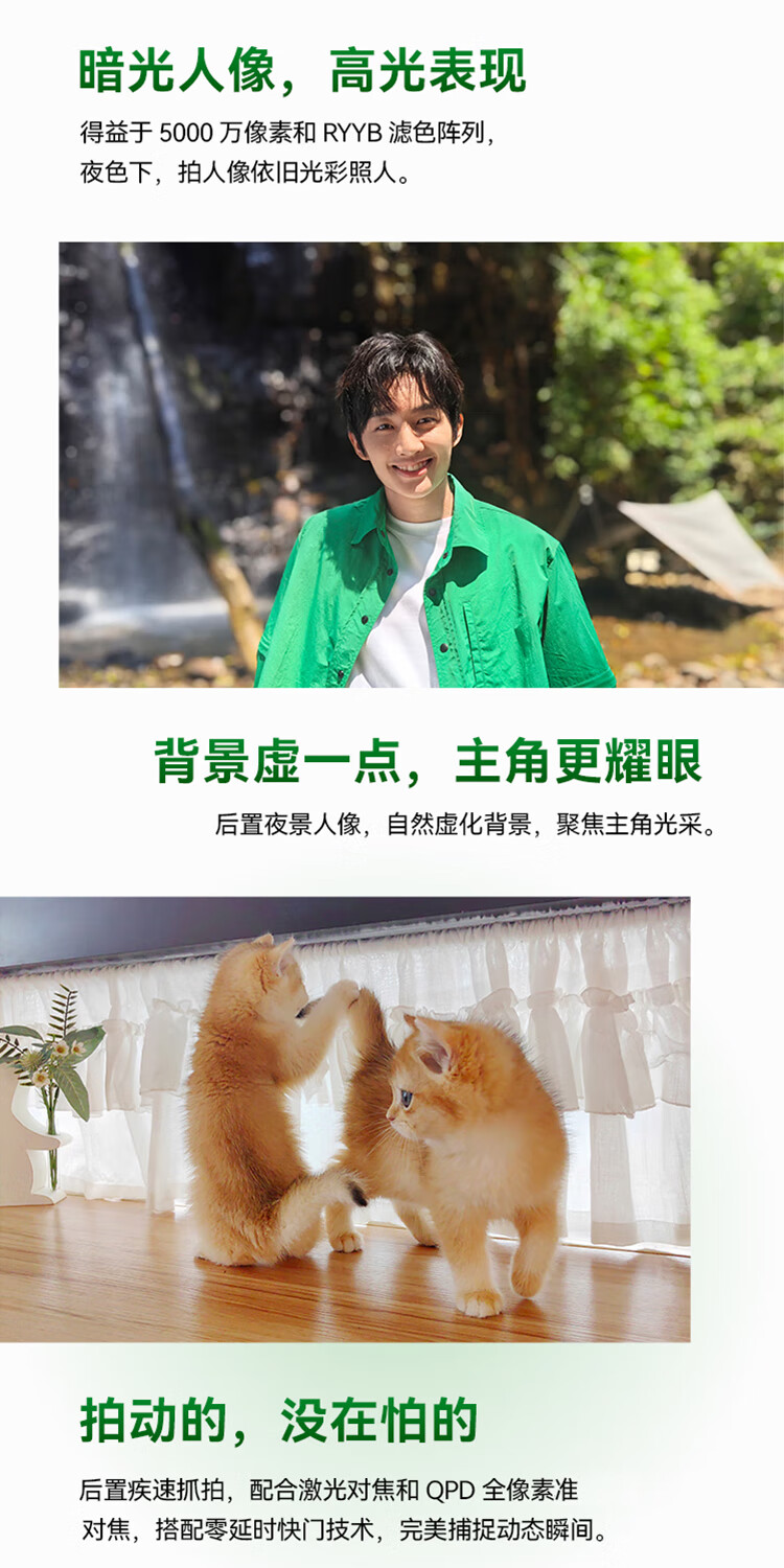 | 拍摄特色 | 前置:短视频/近物对焦/双景录像/慢门/微电影/夜景模式/人像模式/录像/慢动作/延时摄影/全景模式/滤镜/自拍镜像/水印/笑脸抓拍/声控拍照/定时拍摄; 后置:短视频/人像追焦/人像留色/人像虚化/微电影/多机位模式/AI美拍/广角/夜景模式/人像模式/高像素模式/拍照/专业拍照/录像/双景录像/超级微距/全景模式/延时摄影/慢动作/大光圈/水印/文档矫正/动态照片/智能滤镜/定时拍摄/笑脸抓拍/声控拍照/熄屏快拍/连拍 |