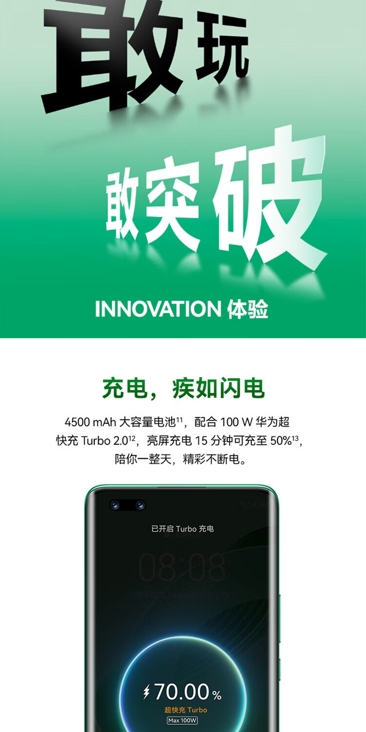| 配置 | 华为SuperCharge充电器×1,USB Type-C 数据线×1,防尘薄膜(出厂已贴在手机上)×1,超薄保护软壳×1,取卡针×1 |