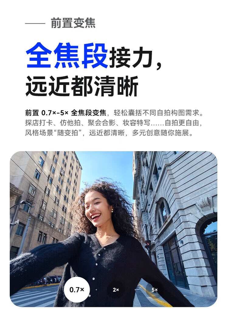 | 后置摄像头像素 | 5000 万像素物理可变光圈摄像头(F1.4~F4.0 光圈,RYYB 超感光滤色阵列)+800万像素超广角微距摄像头(F2.2光圈) |