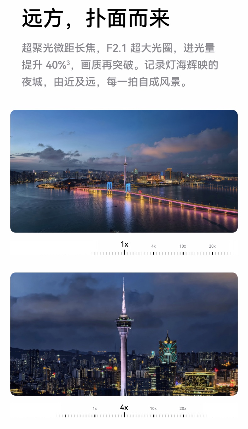 | 功能特征 | 一英寸主摄,超聚光微距长焦,北斗卫星消息 |
