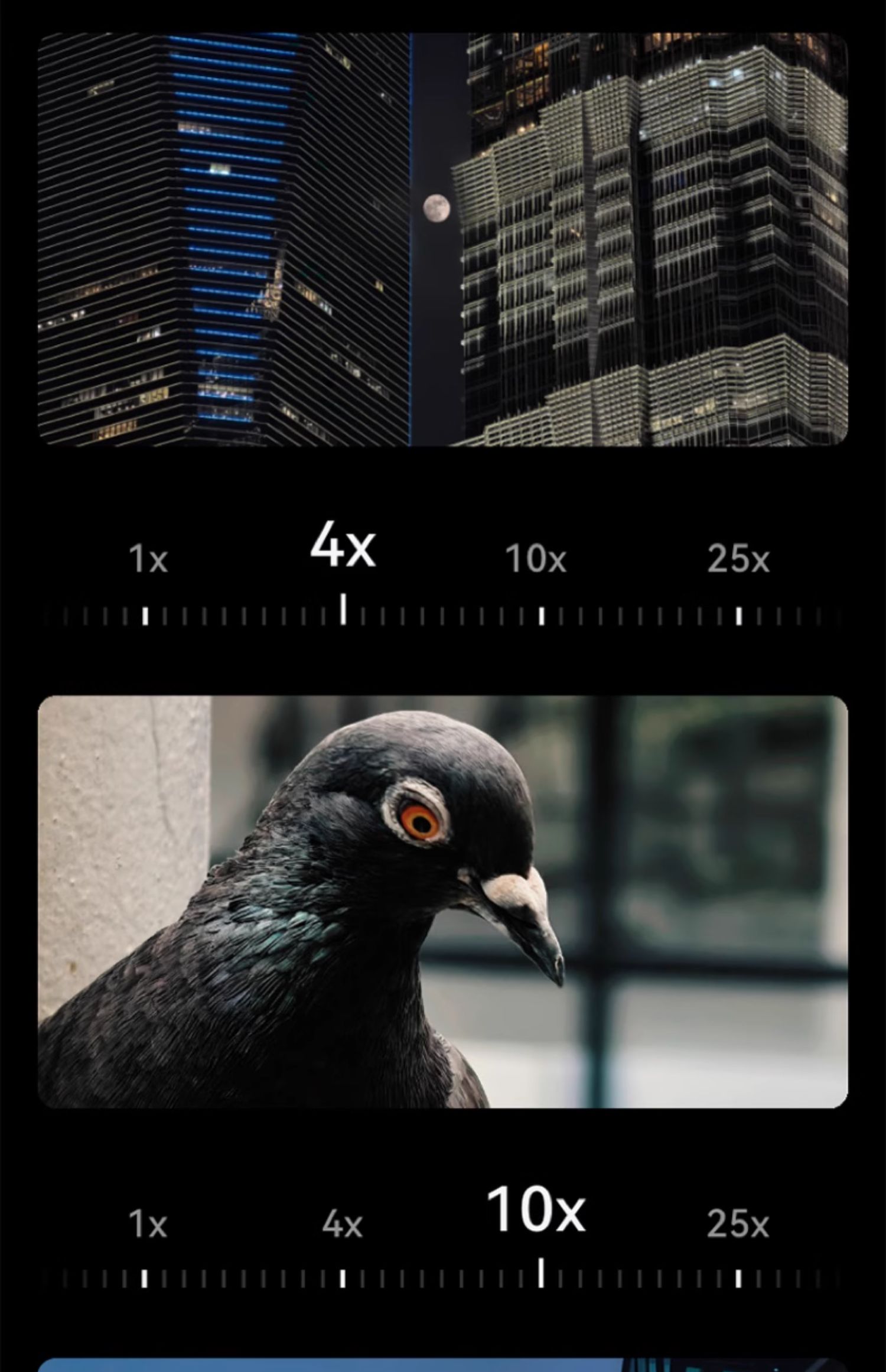 | 变焦模式 | 后置摄像头:支持4倍光学变焦(4倍变焦为近似值,镜头焦段分别为13 mm,22.5mm,92.5 mm)、100倍数字变焦 |