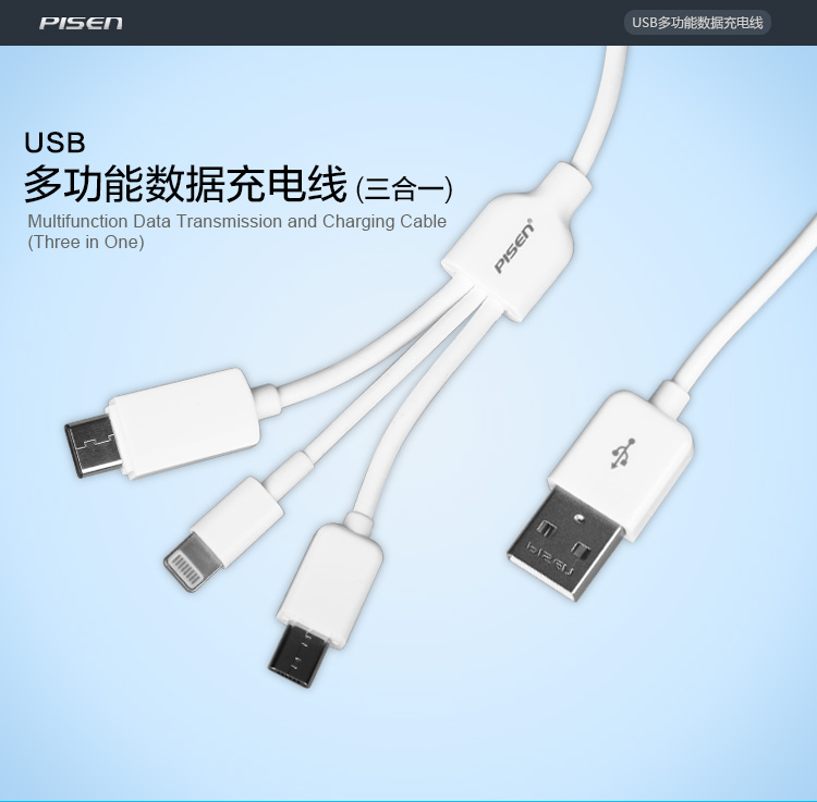 品胜 Type-C 三合一数据充电线 1000mm
