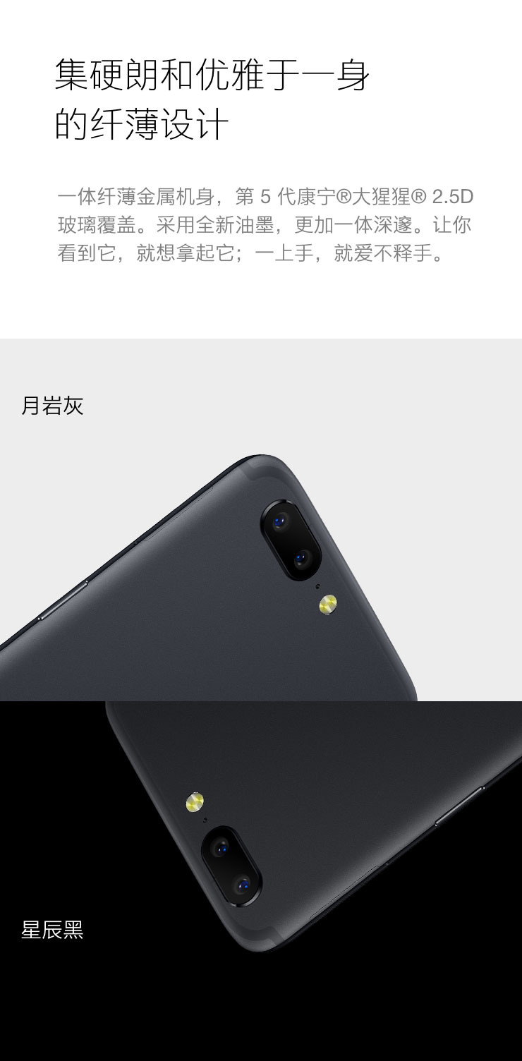 | 包装清单 | OnePlus 5 x1 Dash Type-C 数据线 x1 Dash 闪充适配器 x1 SIM 卡针 x1 快速上手指南 x1 产品重要信息与保修卡 x1 |