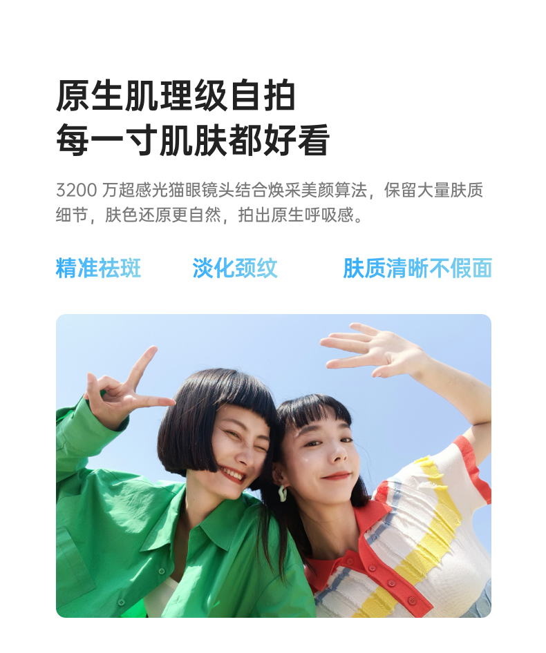 | 视频拍摄 | 后置:支持 4K@30fps、1080P@60fps/30fps、720P@60fps/30fps,支持 AI 视频增强 1080P@30fps,视频防抖支持 EIS,支持视频变焦拍摄,支持慢动作视频拍摄; 前置:支持 1080P/720P@30fps,默认 1080P@30fps(默认开启美颜),前置支持视频防抖 1080P@30fps,720P@30fps,前置支持 AI 视频增强 1080P@30fps。 |