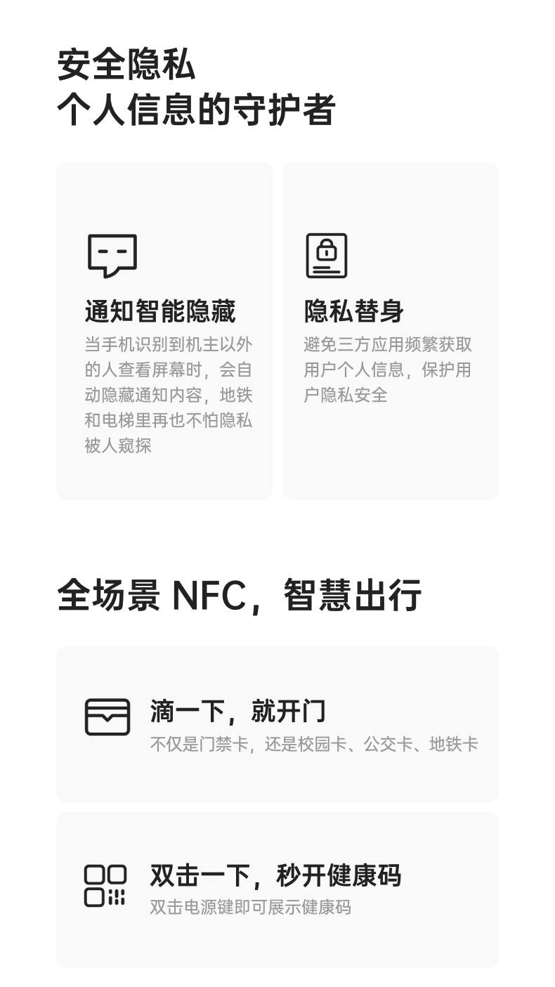 | 产品特点 | 屏幕高刷新率,屏幕指纹,面部识别解锁,支持NFC |