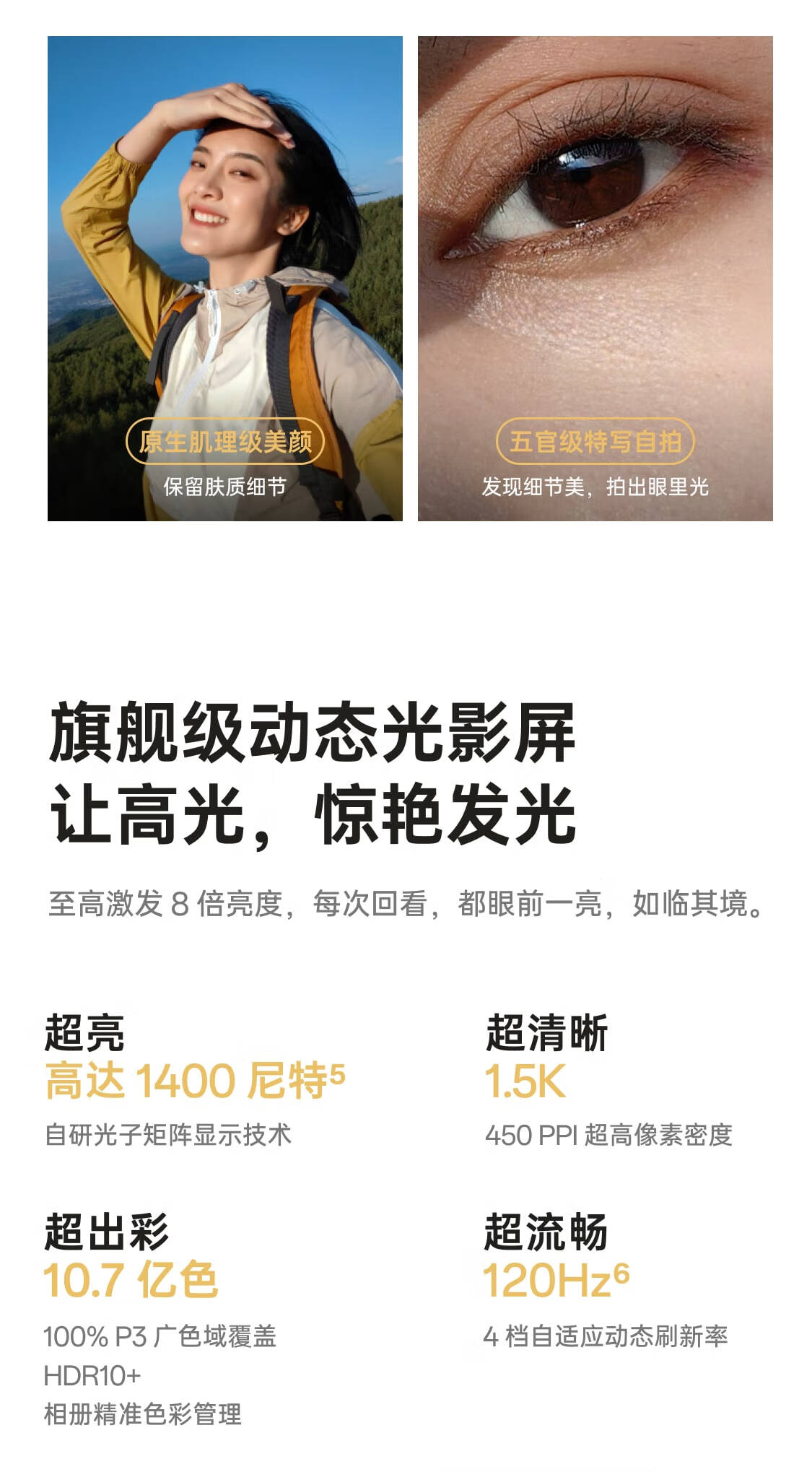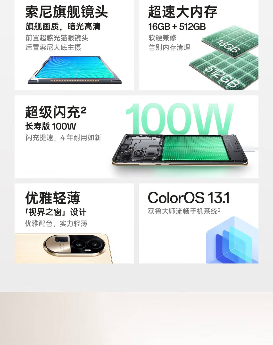 | 功能特征 | 100W长寿闪充,旗舰级超光影潜望长焦 |