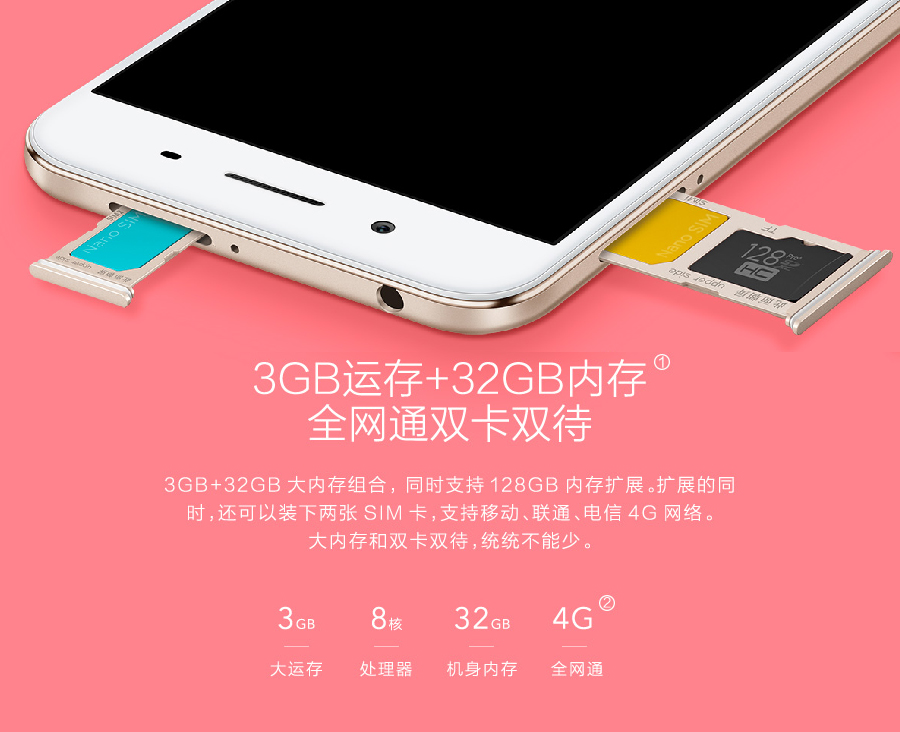 ‧网络:中国移动 4G/3G/2G、中国联通 4G/3G/2G、中国电信 4G/3G/2G