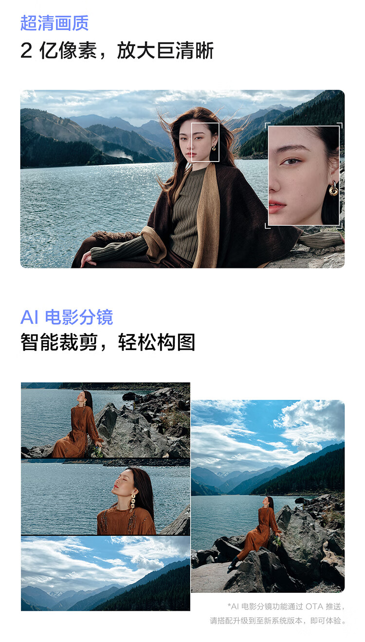 | 拍摄特色 | 前置拍照:人像、拍照、录像、人像录像 后置拍照:抓拍、风光与夜景、人像、拍照、录像、人像录像、全景、超清文档、慢动作、舞台、延时摄影、专业、美食、人文、扫描 |