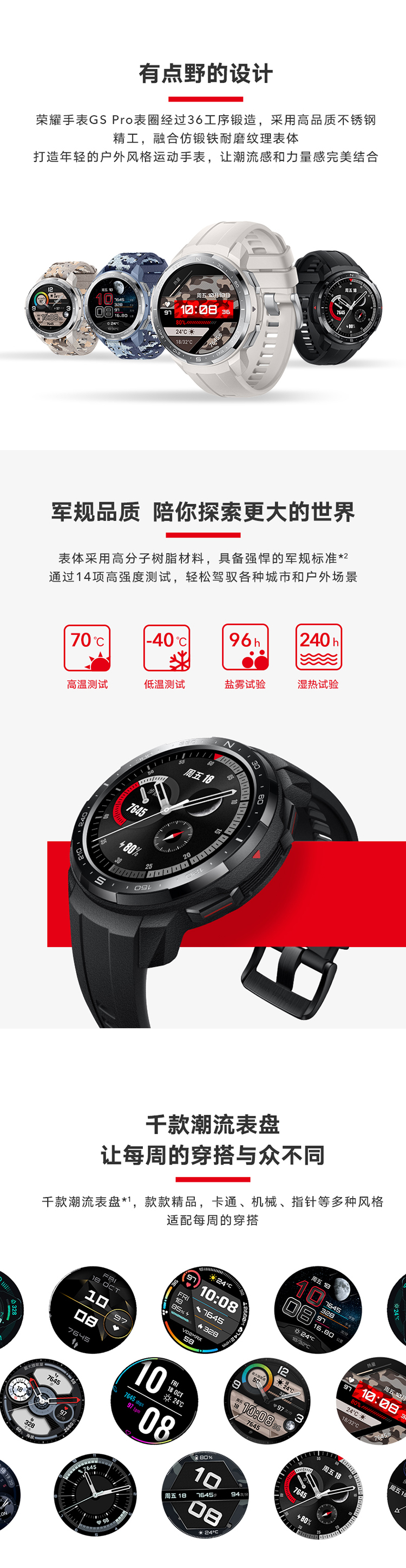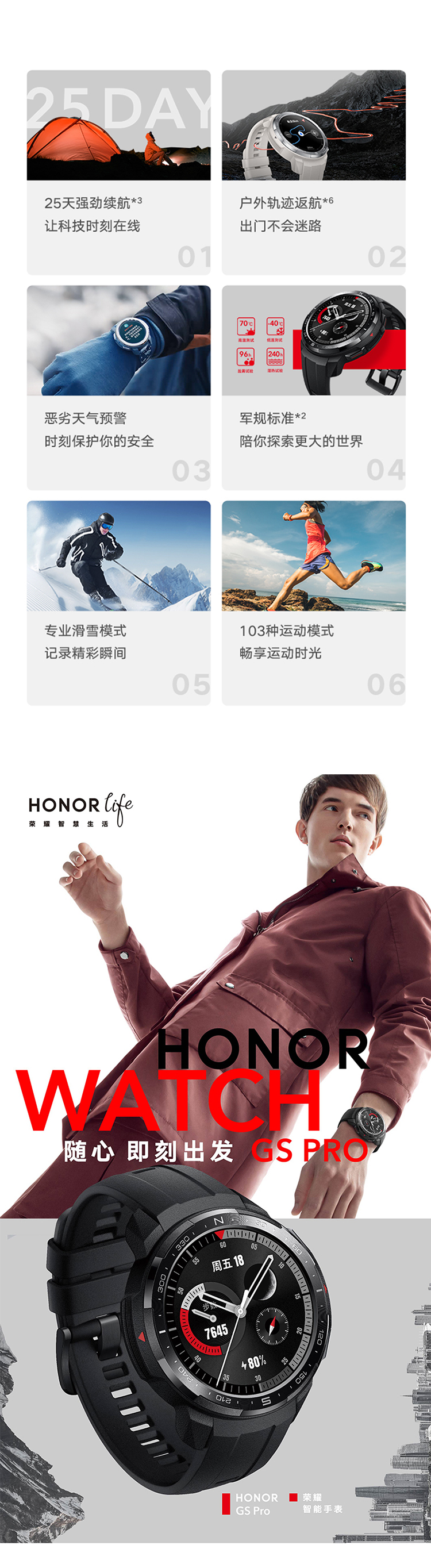 荣耀手表GS Pro 25天续航 麒麟A1芯 103种运动模式 智能语音 蓝牙通话 50米防水 心率血氧睡眠GPS男女