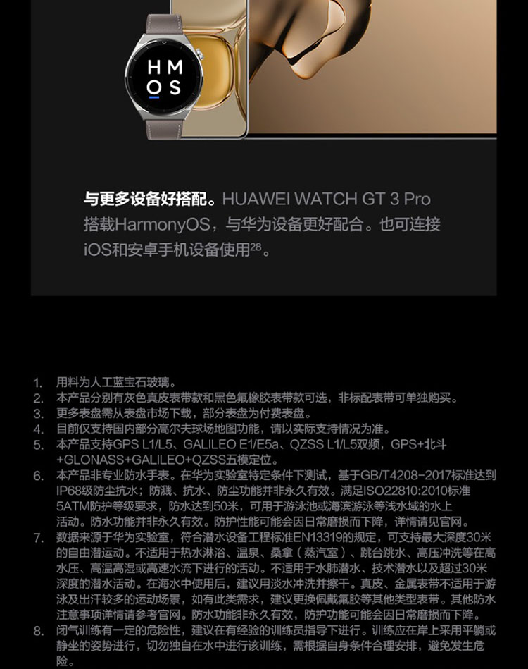 华为 HUAWEI WATCH GT3 PRO 华为手表 运动智能手表 强劲续航/蓝牙通话/ECG心电分析