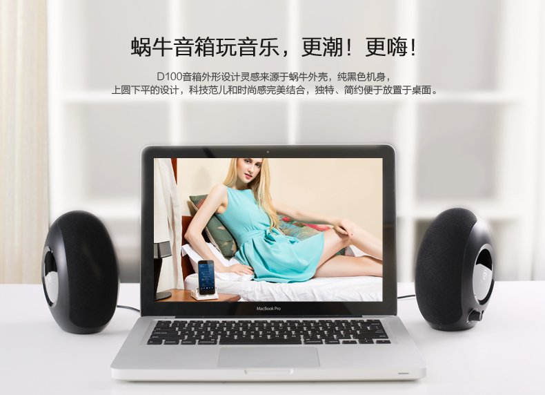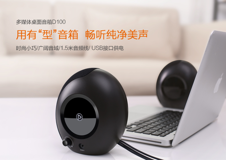 品胜小型音箱 2.0多媒体桌面音箱D100 (黑色)