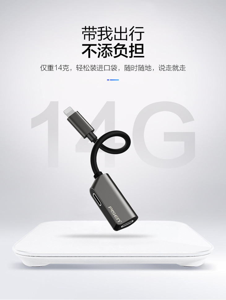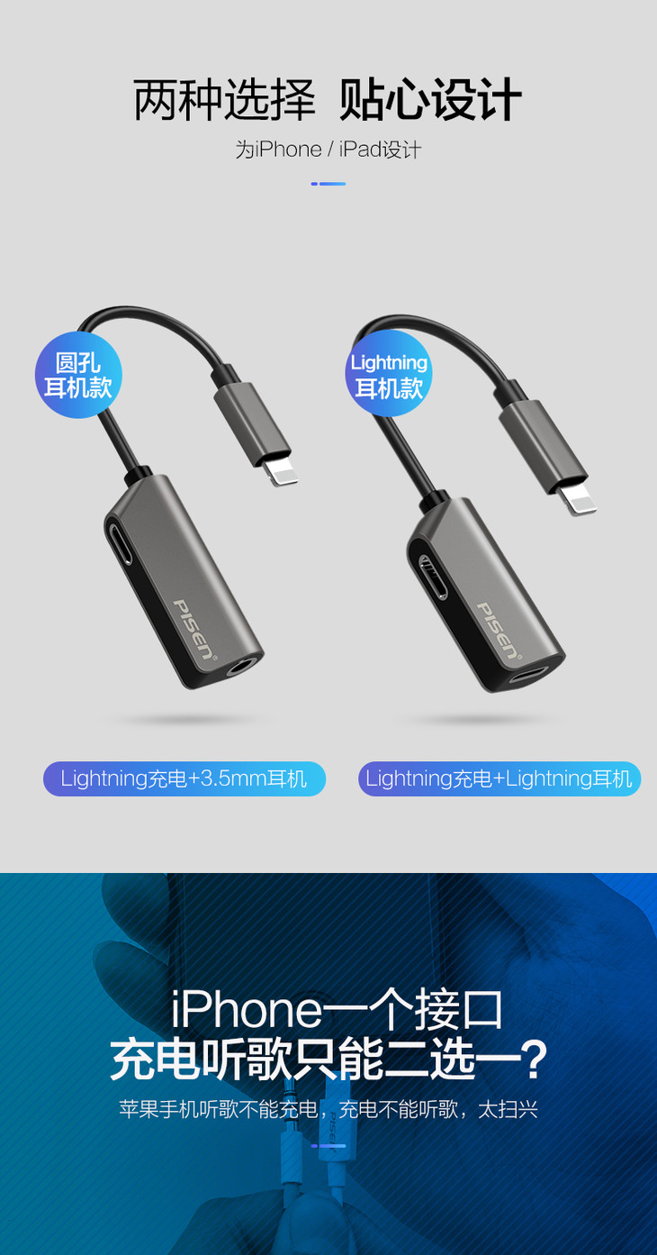 Lightning+3.5mm二合一锌合金转接头(钛金灰)纸质彩盒装