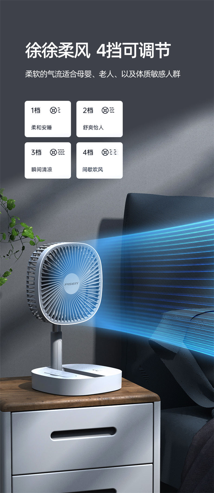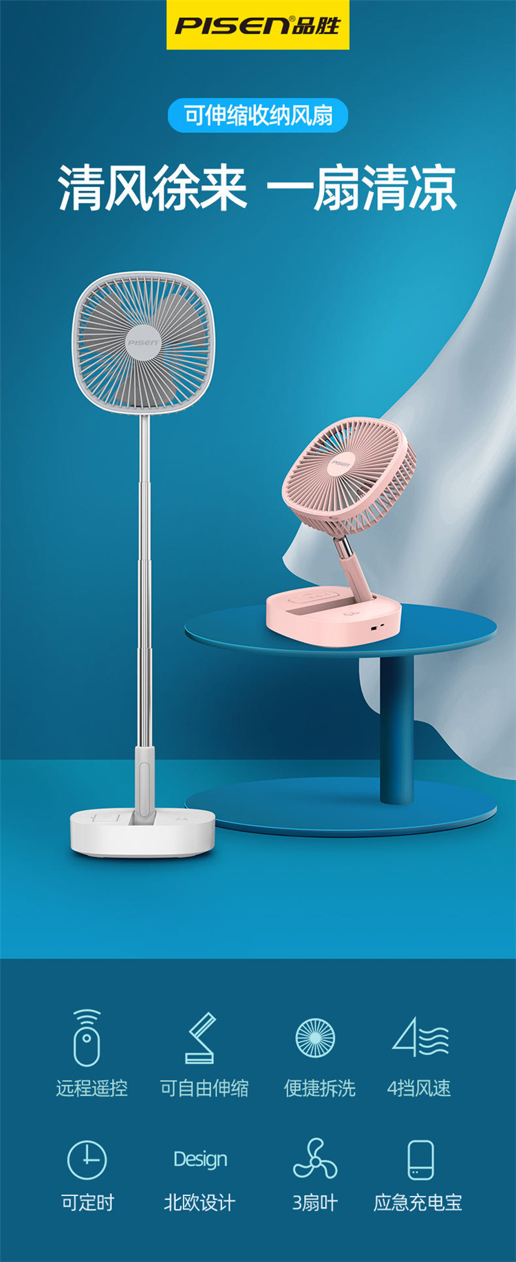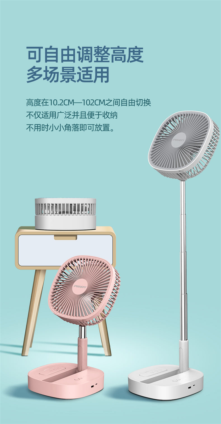 品胜折叠伸缩遥控无线可充电宝USB风扇迷你桌面办公落地便携台式